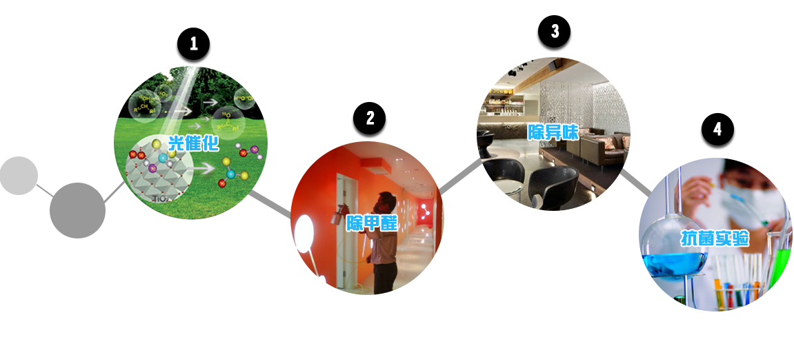 在認(rèn)識(shí)【光觸媒】之前,要先了解什么是【觸媒】。觸媒是日語,翻譯成中文叫催化劑。催化劑是能在化學(xué)反應(yīng)中加速反應(yīng)速率,而本身在反應(yīng)前后并不發(fā)生變化的物質(zhì)。光觸媒是一種以納米級(jí)二氧化鈦為代表的具有光催化功能的光半導(dǎo)體材料的總稱。它涂布于基材表面,在光線的作用下,產(chǎn)生強(qiáng)烈催化降解功能:能有效地降解空氣中有毒有害氣體;能有效殺滅多種細(xì)菌,并能將細(xì)菌或真菌釋放出的毒素分解及無害化處理;同時(shí)還具備除臭、抗污、凈化空氣等功能。 稻田光觸媒采用【磷灰石被覆納米二氧化鈦分子結(jié)構(gòu)】,具有吸附、分解、去除、無毒化的特質(zhì)。表面磷灰石包覆技術(shù)不直接接觸基材表面,在充分發(fā)生氧化反應(yīng)的同時(shí)對(duì)基材本身無腐蝕。其中的【磷灰石】成分,具有強(qiáng)大的吸附能力,可以隨時(shí)吸附空氣中的異味源、細(xì)菌、病毒等有害物質(zhì),再交由【二氧化鈦】在光源下進(jìn)行分解反應(yīng),因此能夠24小時(shí)吸附、分解